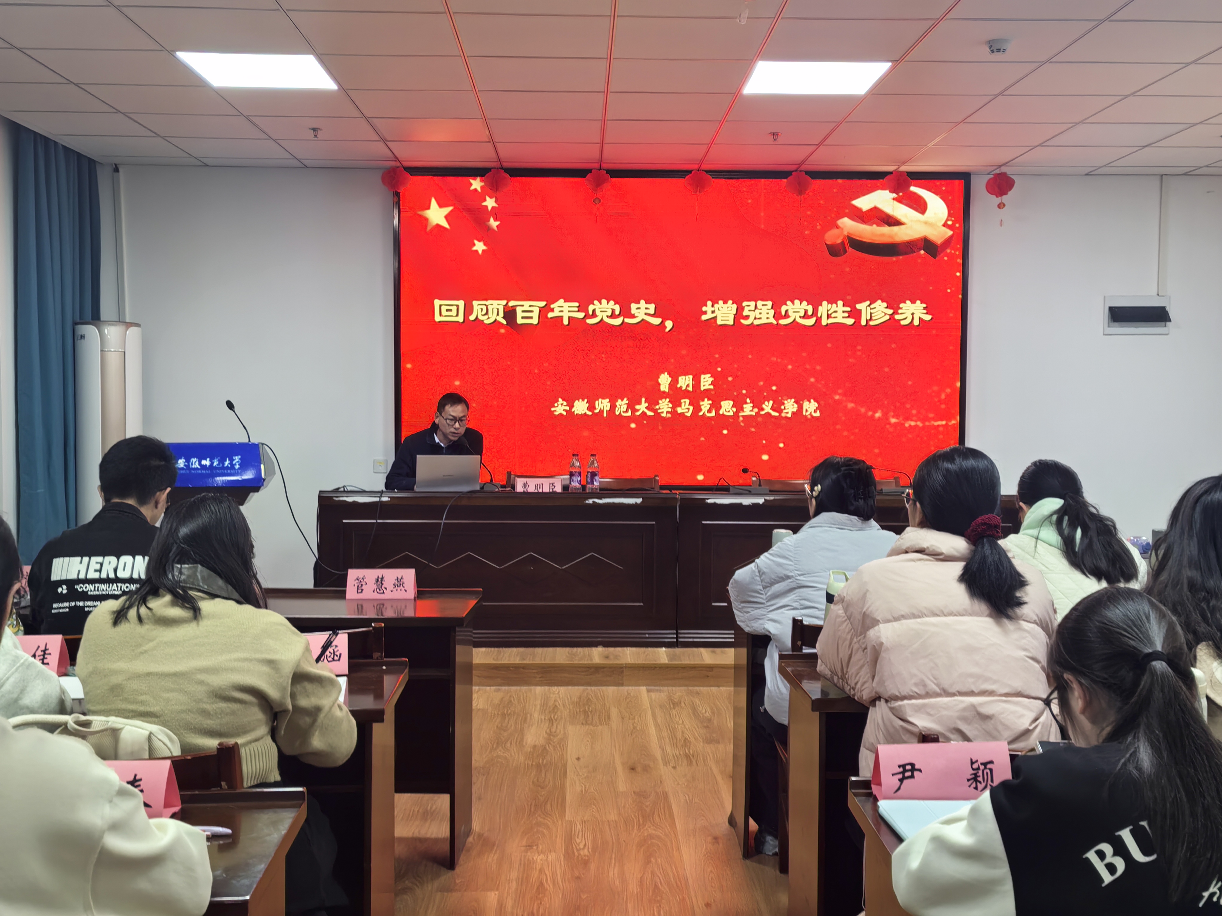 11月5日晚上,数学与统计学院分党校第十四期党员培训班在文典楼C108报告厅举行。马克思主义学院副教授曹明臣应邀为培训班成员讲授“共产党员的党性修养”专题党课。本次党课由分党校班主任陈华玥主持。
