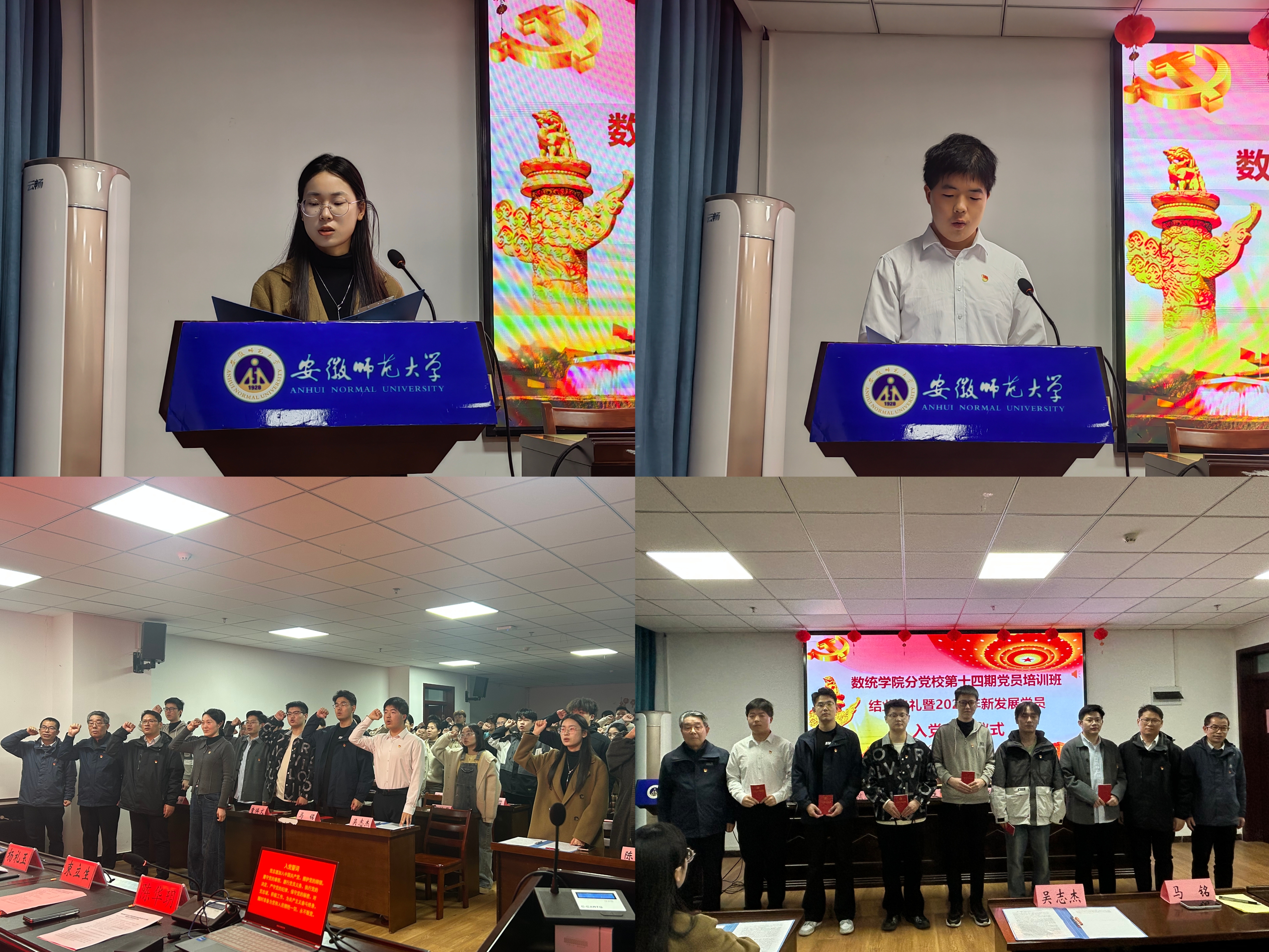 结业典礼在庄严的国际歌歌声中拉开帷幕。首先,屈光峰宣读了2025年新发展党员名单。随后,院领导老师为新发展党员代表佩戴党员徽章,颁发党章。在吴胜儿的带领下,全体党员高举右手,面向鲜红的党旗郑重宣誓。2025级数学专业研究生王佳楠作为老党员代表发言,她强调青年党员要坚定理想信念,永葆政治本色,坚持勤奋学习,提升综合素质,发挥好党员的先锋模范作用。2023级统计学专业吴志杰作为党员培训班学员代表发言,他分享自己在培训班的收获与感悟,强调组织上入党一生一次,思想上入党一生一世,呼吁同志们要不断加强理论知识的学习,充分发挥共产党员的先锋模范作用,为奋力实现中华民族伟大复兴的中国梦而不懈奋斗。
