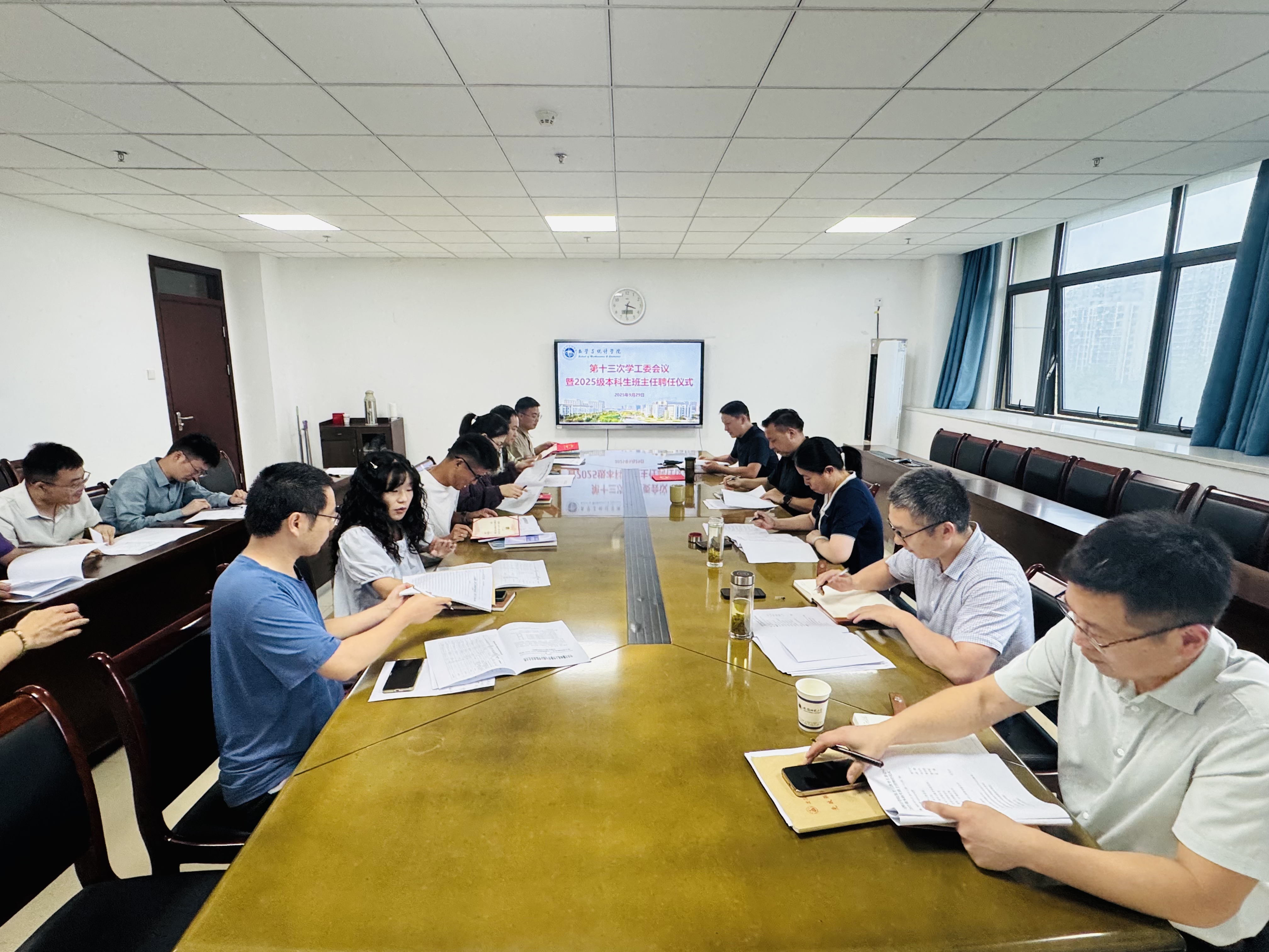 为深入推进大学生护航行动计划,统筹做好国庆假期学生安全工作,切实抓好护航队伍和颁发学风建设,9月29日下午15:30,数学与统计学院在文典楼C410会议室召开第十三次学工委会议暨2025级本科生班主任聘任仪式。院党委书记、院学工委主任黄友生,院长、院学工委主任汤敏,院党委副书记、院学工委常务副主任芮先红,学院副院长、院学工委副主任曹明响、崔建,全体专兼职辅导员及2025级本科生班主任共同参会。会议由芮先红主持。