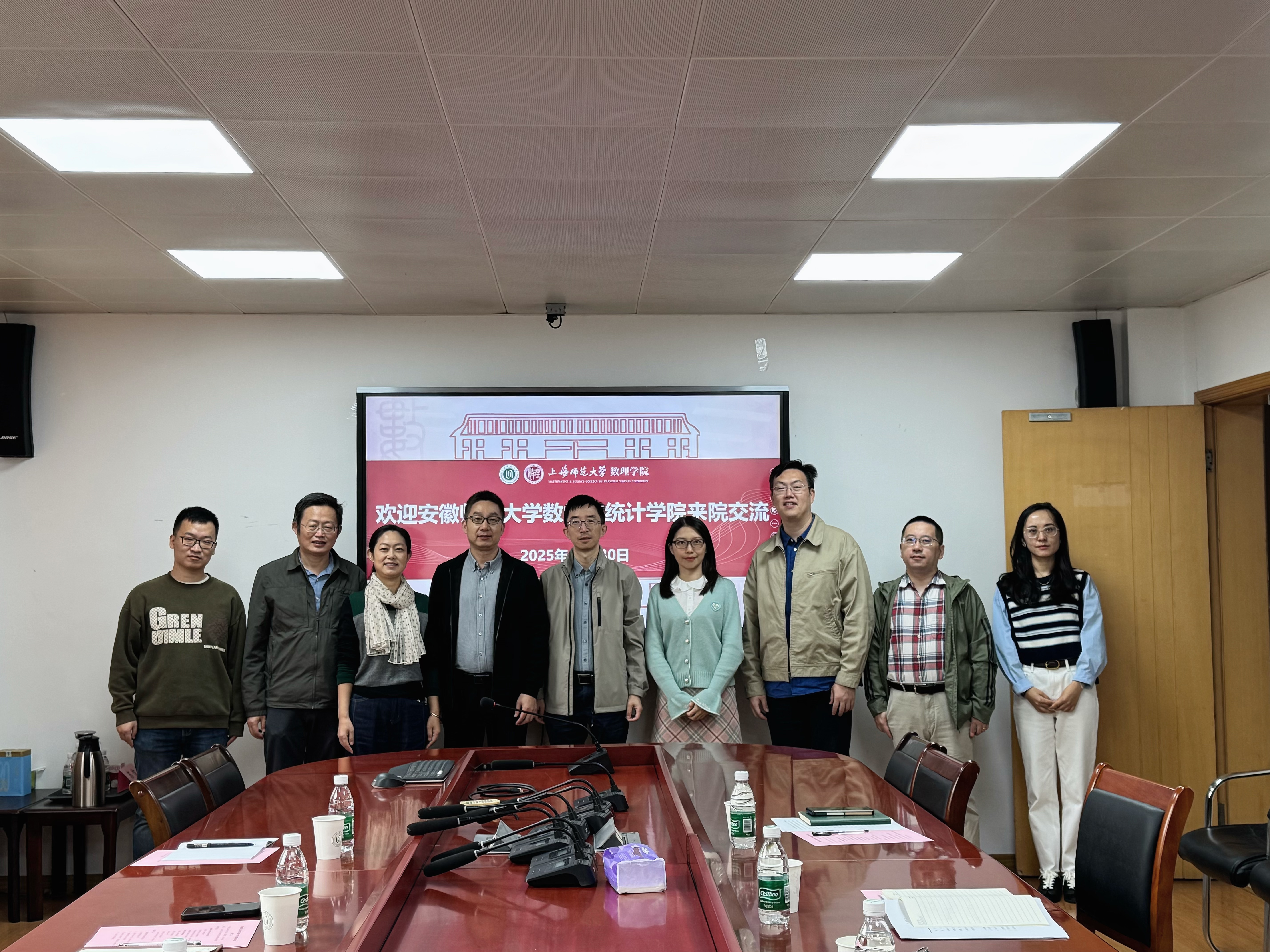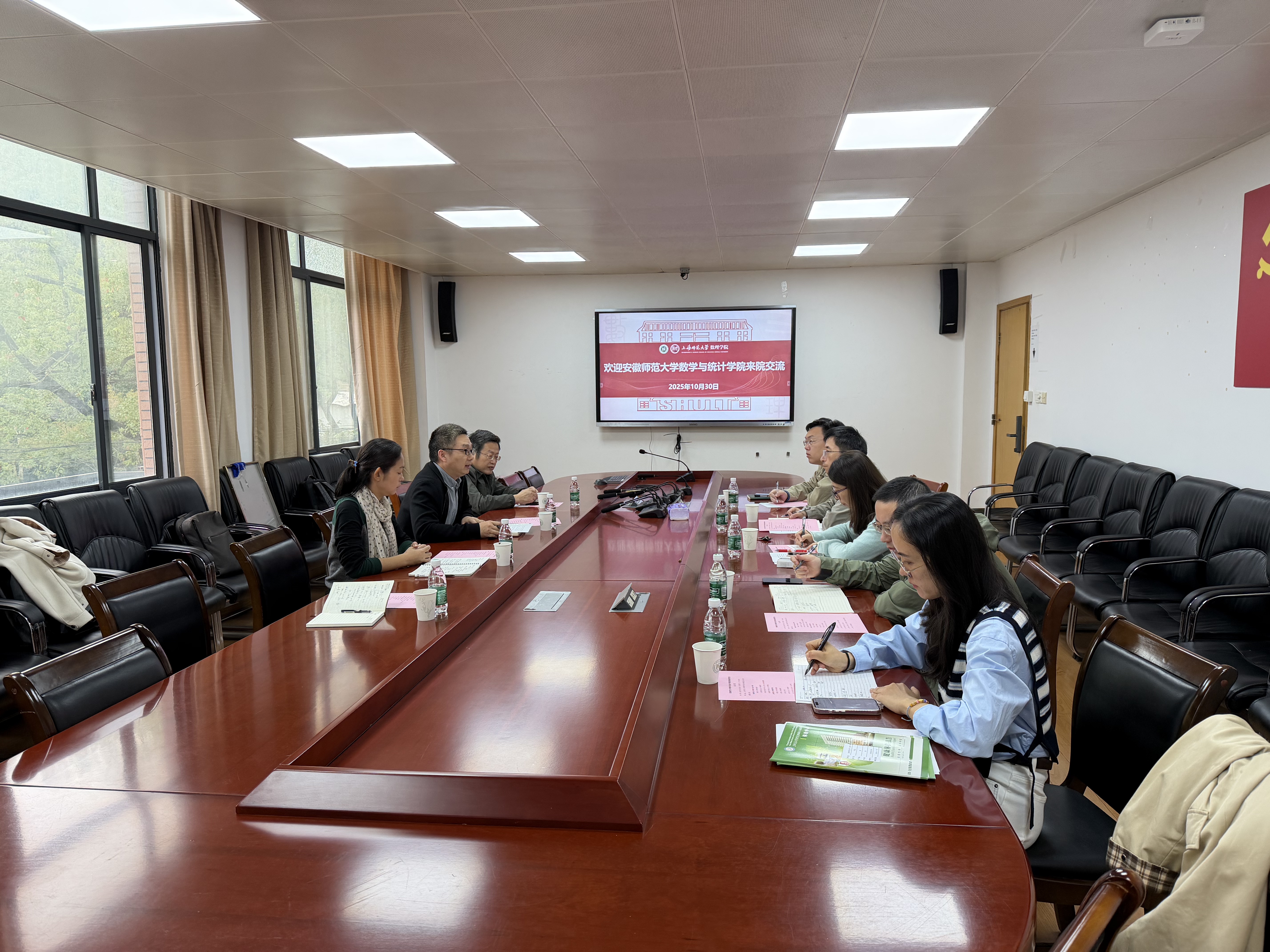 为扎实推进2026年本科生培养方案修订工作,学习借鉴兄弟院校在人才培养与教学改革方面的先进经验,2025年10月30日,安徽师范大学数学与统计学院副院长曹明响、应用数学系主任朱敏、学科教学(数学)硕士点负责人董建功、基础数学系副主任李勇一行赴上海师范大学数理学院开展专题调研交流。上海师范大学数理学院副院长林方婷、副院长郭谦、党委副书记林恺、数学系主任吕翔、统计学本科专业负责人刘玉出席调研座谈会,会议由林方婷主持。