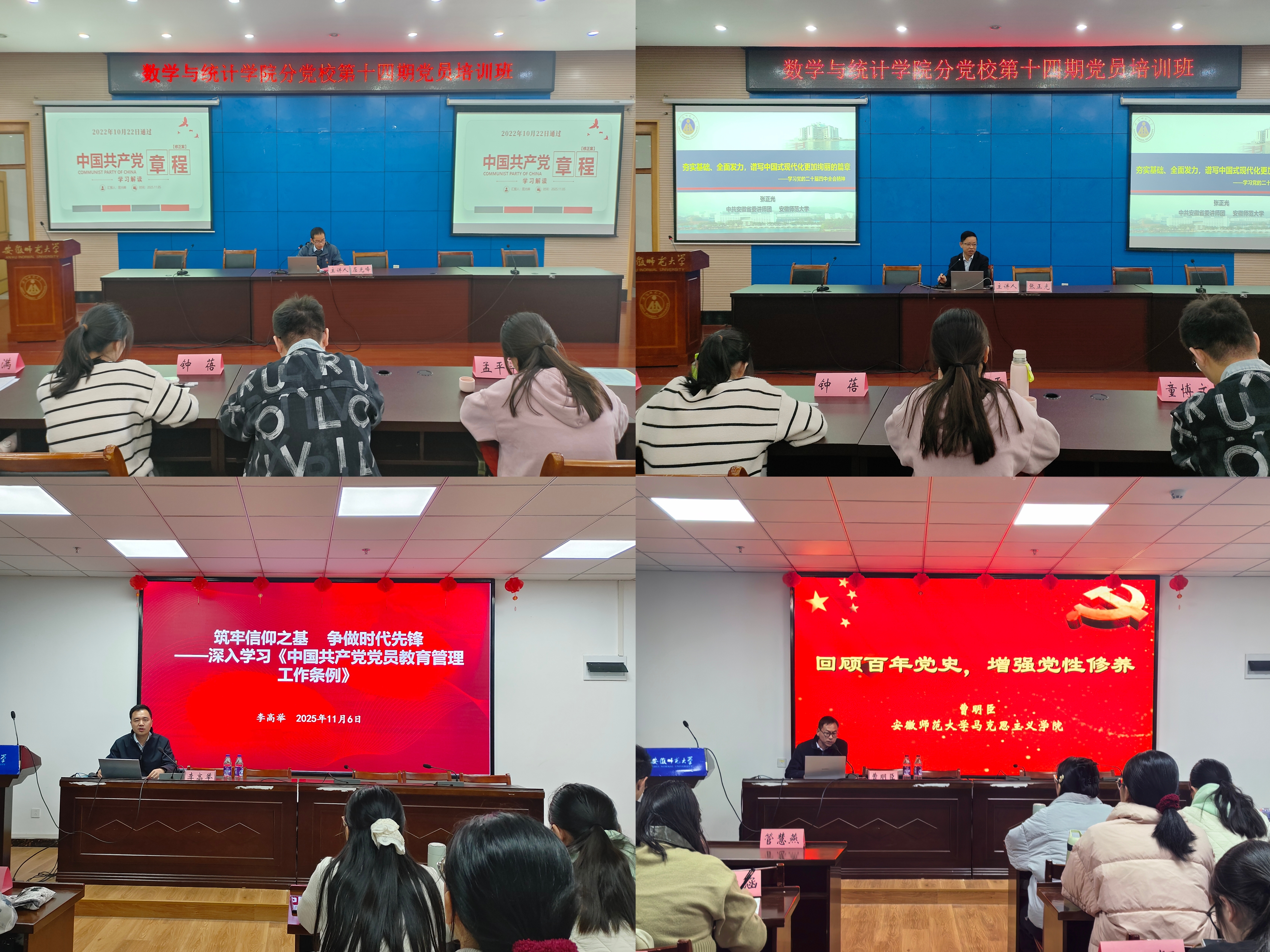 为深入学习贯彻党的二十大和二十届四中全会精神,切实加强党员党性教育,筑牢信仰长城,保持良好作风,数学与统计学院分党校扎实开展了第十四期党员教育培训工作。