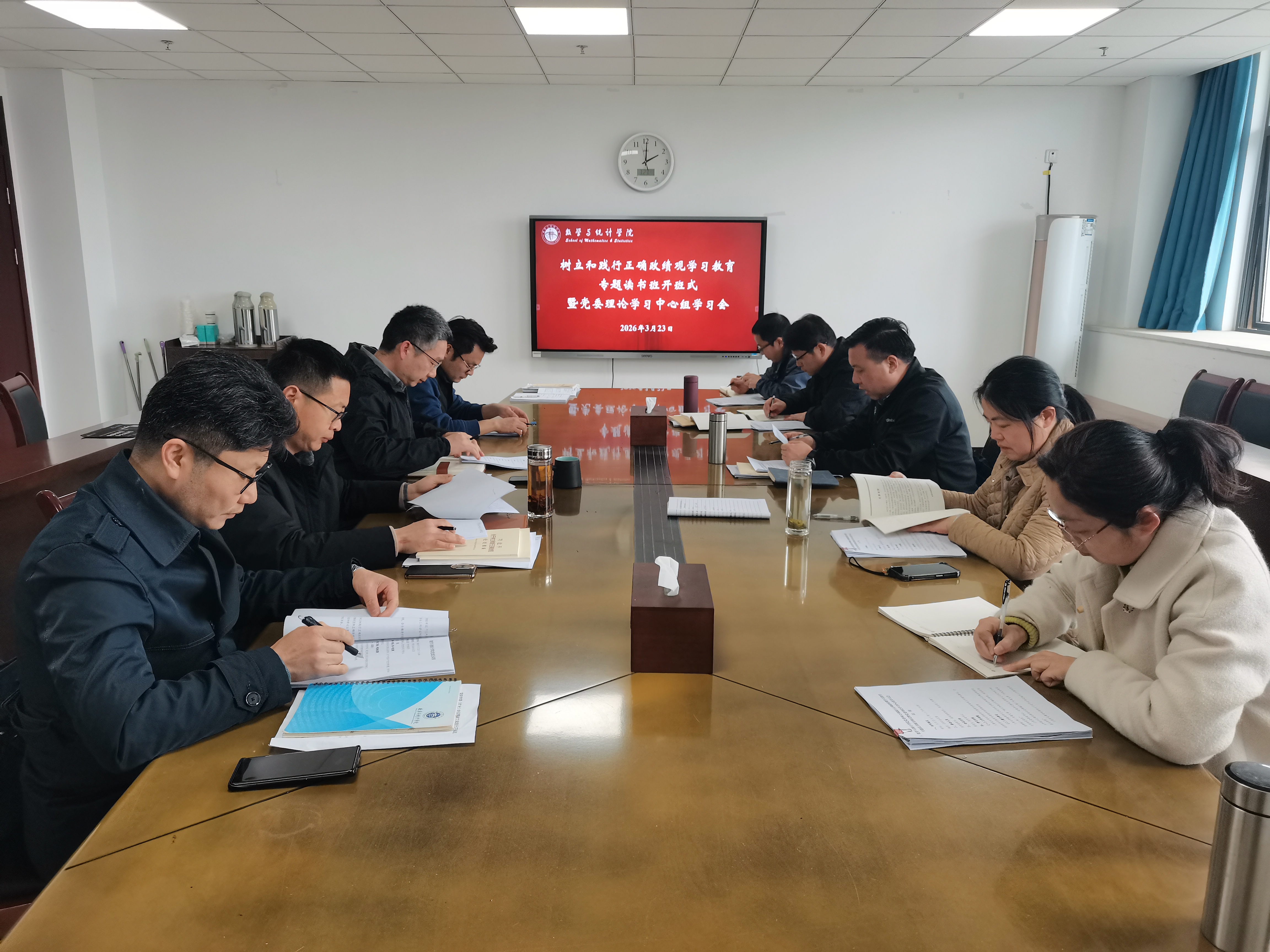 3月23日下午,数学与统计学院党委举行树立和践行正确政绩观学习教育读书班开班式暨党委理论学习中心组(扩大)学习会,深入学习贯彻习近平总书记关于树立和践行正确政绩观的重要论述,传达学习上级有关会议文件要求,部署安排学院读书班学习工作。院党委委员、副处级组织员、系主任参加会议,会议由院党委书记黄友生主持。