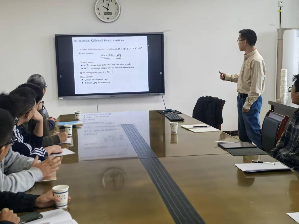 2025年10月20日上午,芝加哥大学朱聿哲博士应邀在数学与统计学院青年方程论坛第87期作题为“Fisher information in kinetic equations”的学术报告。报告会由学院副院长费明稳教授主持,学院刘吕桥副教授、汤厚志博士、陈志博士以及应用数学专业的部分研究生参加了报告会。