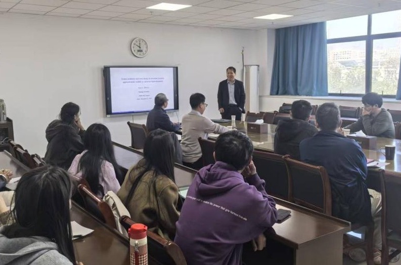 2025年11月11日上午,南京大学栗付才教授应邀在学院零壹论坛系列讲座第444讲作题目为“Global existence and time decay of solutions to some approximation models in radiation hydrodynamics”的学术报告。报告会由学院副院长费明稳教授主持,学院刘吕桥副教授、于洋海副教授、王定怀副教授、汤厚志博士以及数学专业的部分博士研究生和硕士研究生参加了报告会。