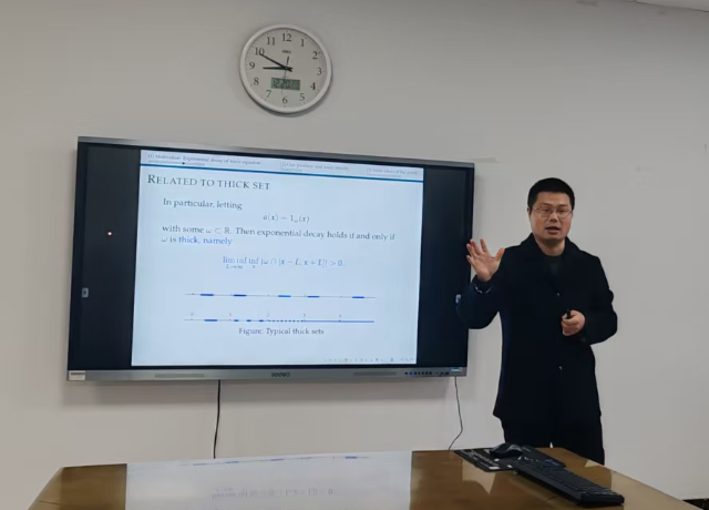 2025年12月20日,中南大学王明教授应邀在数学与统计学院青年方程论坛第91期作题为“Exponential decay of linear KdV-type equations with localized damping on measurable space-time sets”的学术报告。报告会由学院刘吕桥副教授主持,学院偏微分方程团队老师以及应用数学专业的部分研究生参加了报告会。