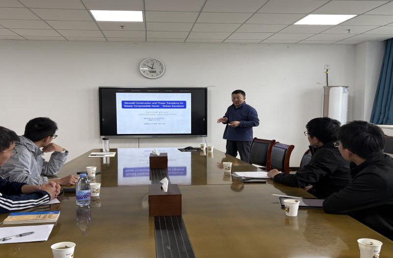 2026年4月10日上午,北京化工大学施小丁教授应邀在数学与统计学院分析与计算系列讲座第97讲作题为“Maxwell Construction and Phase Transitions for SteadyCompressible Navier-Stokes Equations”的线下学术报告。报告会由学院院长费明稳教授主持,学院陈志博士、汤厚志博士、韩敬文博士以及应用数学专业的部分博士生和研究生参加了报告会。