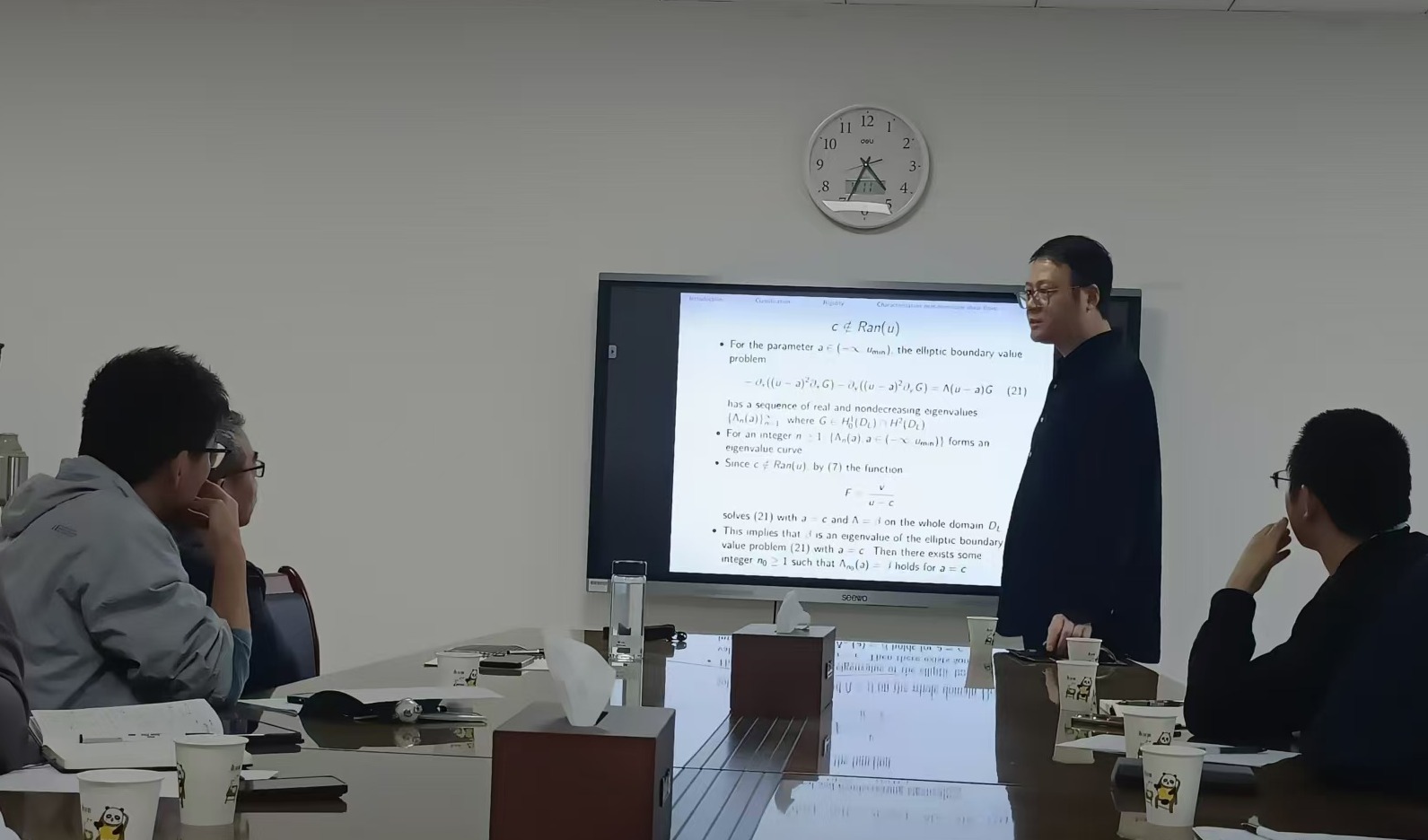 林治武教授首先回顾了描述星体云层 beta-plane 方程的历史,随后分享了他们最近和合作者关于该方程行波解有关解的分类方面的工作。
