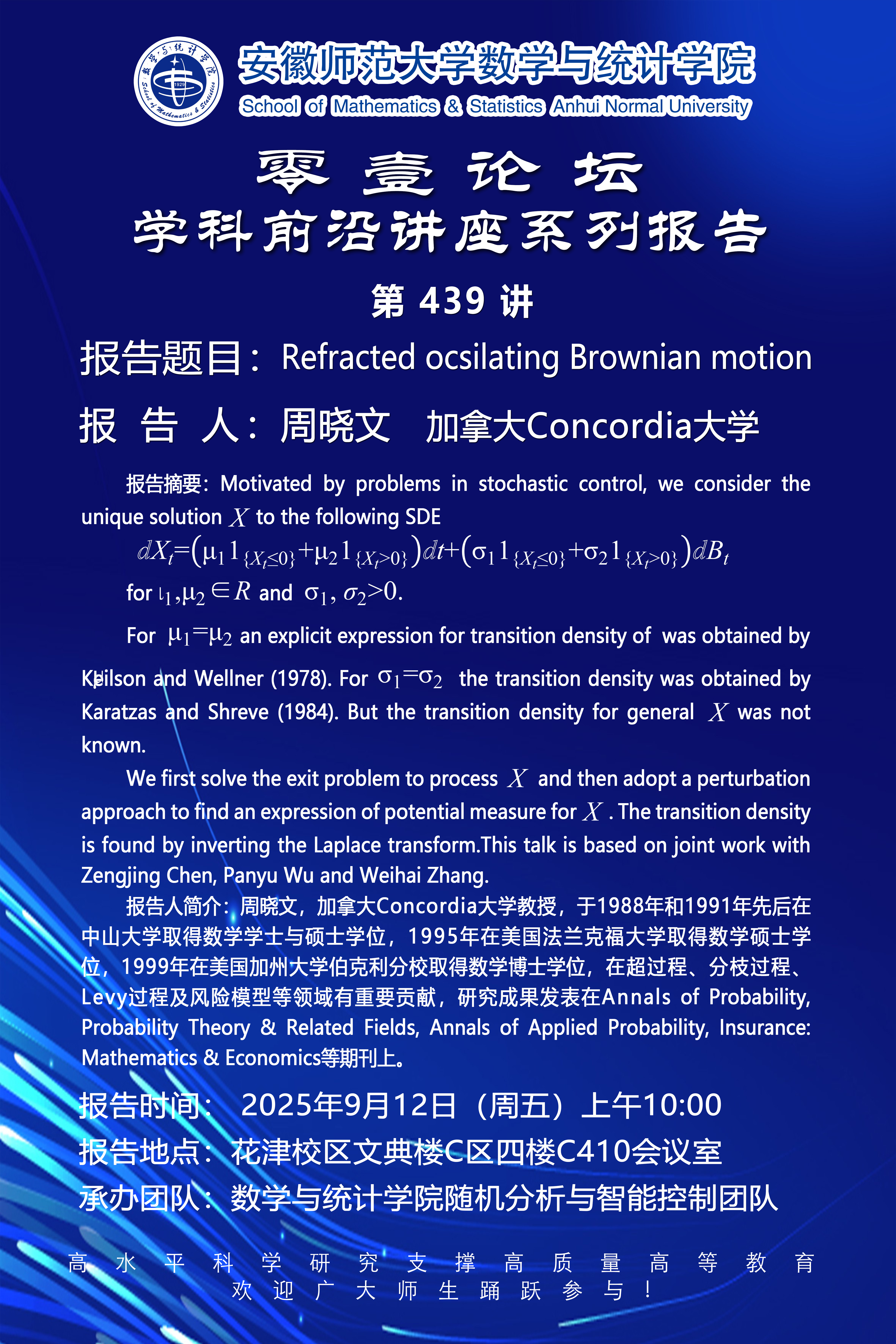 【学术预告】零壹论坛第439讲:Refracted ocsilating Brownian motion