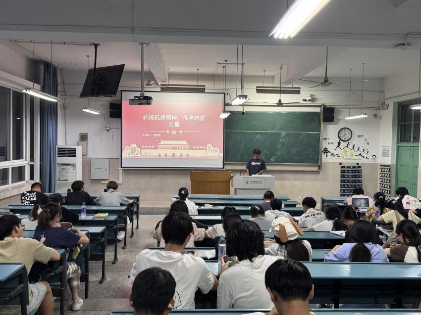 2025年9月27日晚,数统学院2024级数学与应用数学(师范)1、5班在金智悦同学的主持下开展了“弘扬抗战精神,传承奋进力量”主题团日活动。此班会旨在引导同学们深入学习抗战精神,汲取奋进力量,激励大家在新时代奋勇前行。