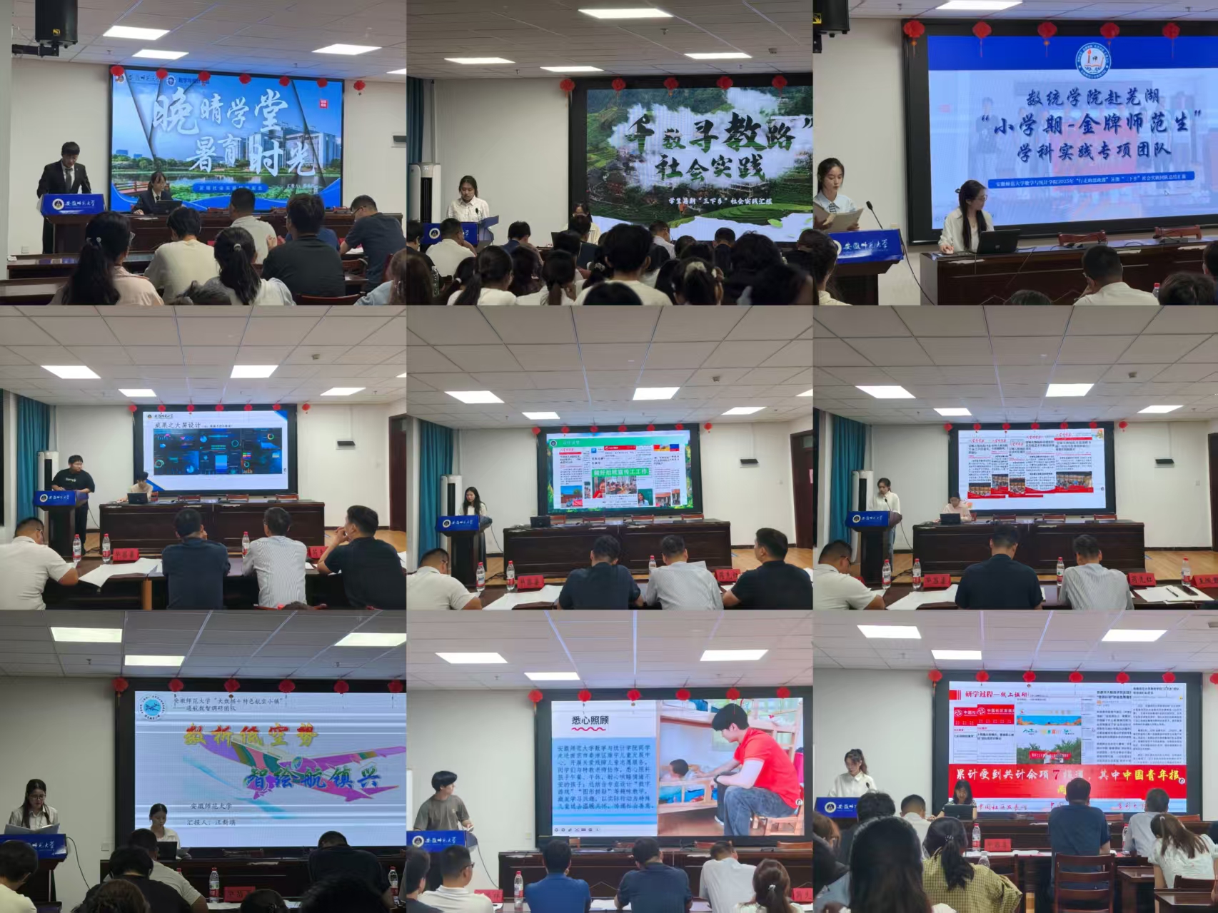 会上,本年度学院派出的26支暑期社会实践团队围绕“走-看-讲-思-做”等内容依次进行了成果展示。各团队通过PPT讲解、视频播放与数据分析等形式,全面复盘了实践过程。其中,“数学π递”系列团队展示了在芜湖、宣城等地将数学知识与红色文化、心理教育融合的创新支教模式;“大数据+X”产业调研团队汇报了在南京、芜湖多家企业,运用专业知识分析产业现状、助力数字化转型的调研成果;“雷锋驿站”专项团队则分享了深入社区、乡村开展理论宣讲、关爱“一老一小”等公益服务的暖心故事。现场汇报内容丰富、亮点纷呈,充分体现了数统学子扎实的专业素养与服务社会的责任担当。