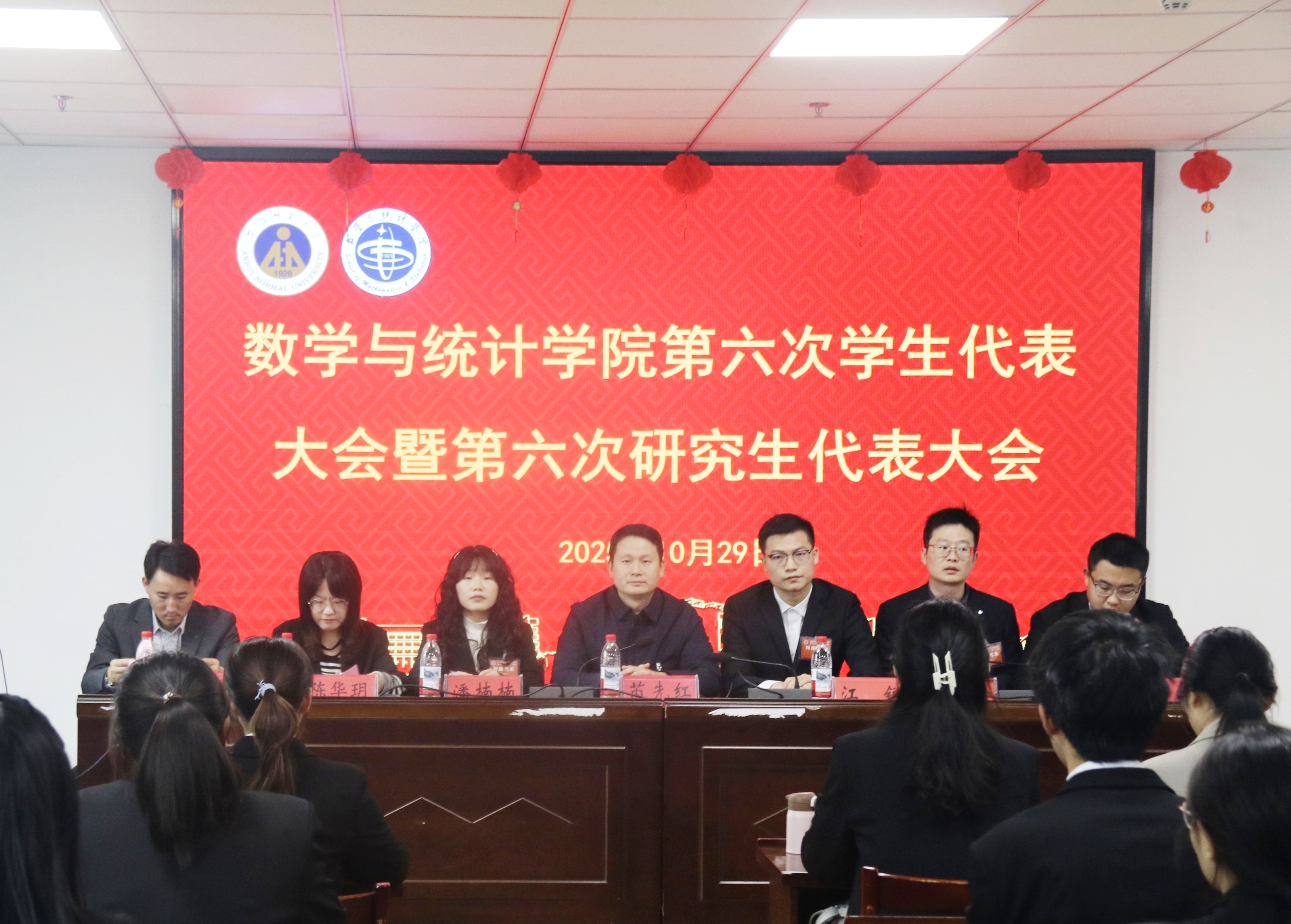 10月29日下午14:30,数学与统计学院第六次学生代表大会暨第六次研究生代表大会在花津校区文典楼C108会议室隆重召开。学院党委副书记芮先红、团委书记江锐、团委副书记潘楠楠、研究生会指导教师朱荣祥、辅导员毕昌喜、陈孟奇、陈华玥出席大会,第六次学生代表大会及研究生代表大会全体代表参加会议。会议由学生会综合部部长许艺菲主持。