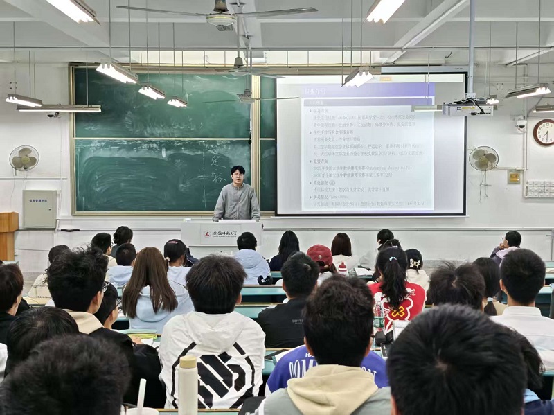 分享会伊始,杨百川结合自身从入学到成长的完整经历,以“专业认知+竞赛启蒙”为核心展开分享。他先从统计学专业的核心课程体系、学习方法维度切入,围绕“为什么要参加学科竞赛”展开,从“提升专业能力”“丰富履历”“拓展人脉”三个层面阐述竞赛意义。紧接着,吴志杰分享了参与志愿服务活动的心得与学生工作任职体会。他提到,志愿服务与任职经历,不仅能提升锻炼沟通协调能力,同时这些能力与专业学习、竞赛备赛形成互补,将共同助力个人成长。