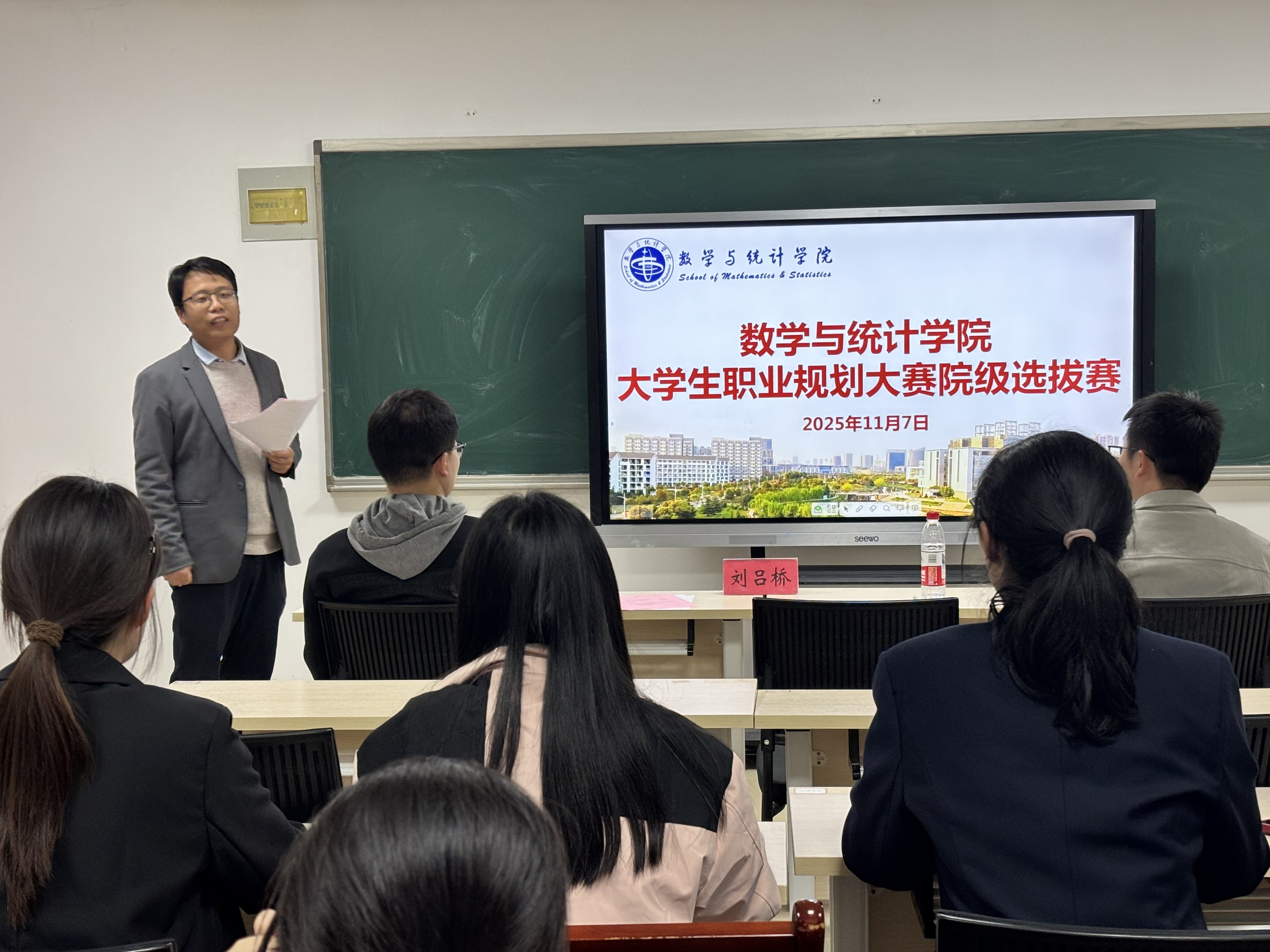 为引导学生树立正确的成才观、就业观和职业规划意识,科学合理地规划大学学习与未来发展,11月7日下午,数学与统计学院在文典楼C204举行第十六届大学生职业规划大赛院赛。数学与统计学院党委副书记芮先红、应用数学系副主任刘吕桥、团委书记江锐、辅导员毕昌喜、陈孟奇以及各参赛选手出席本次比赛。本次比赛由院团委素质拓展部副部长王俊杰主持。