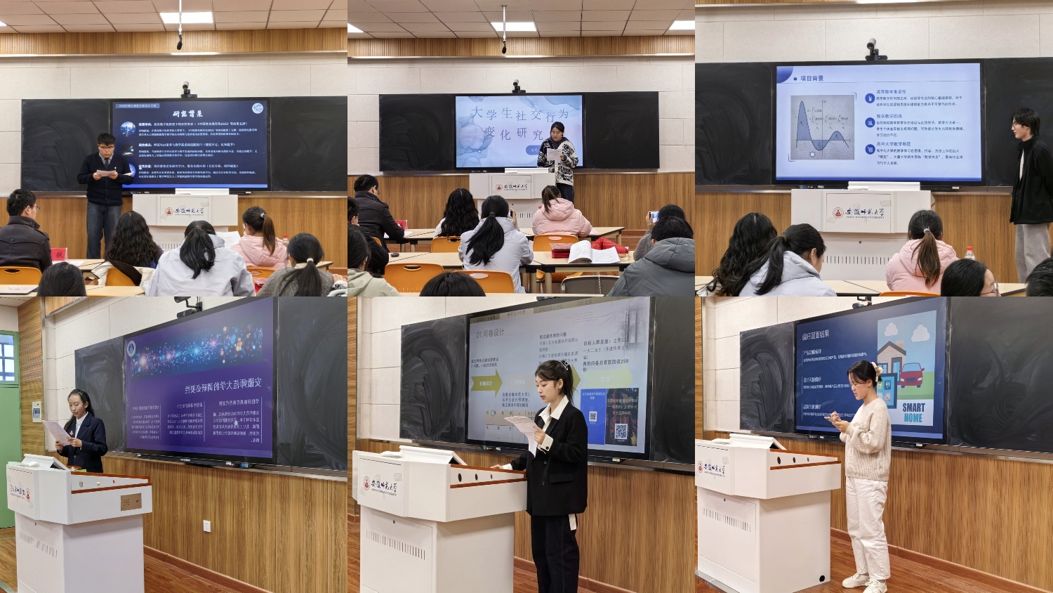 本届大赛以“智启未来,创想无界”为主题,分为PPT汇报与选手答辩两个环节。比赛开场,六组参赛队伍依次展示队名与口号,随后围绕各自聚焦的社会热点与专业议题,系统汇报调查背景、研究方法、分析过程及结论建议。答辩环节中,评委们针对各参赛组的PPT制作、内容汇报及调查步骤等进行提问,并给出专业性修改建议。经过激烈的角逐,本次大赛评出一等奖队伍一支,二等奖队伍一支,三等奖队伍两支。