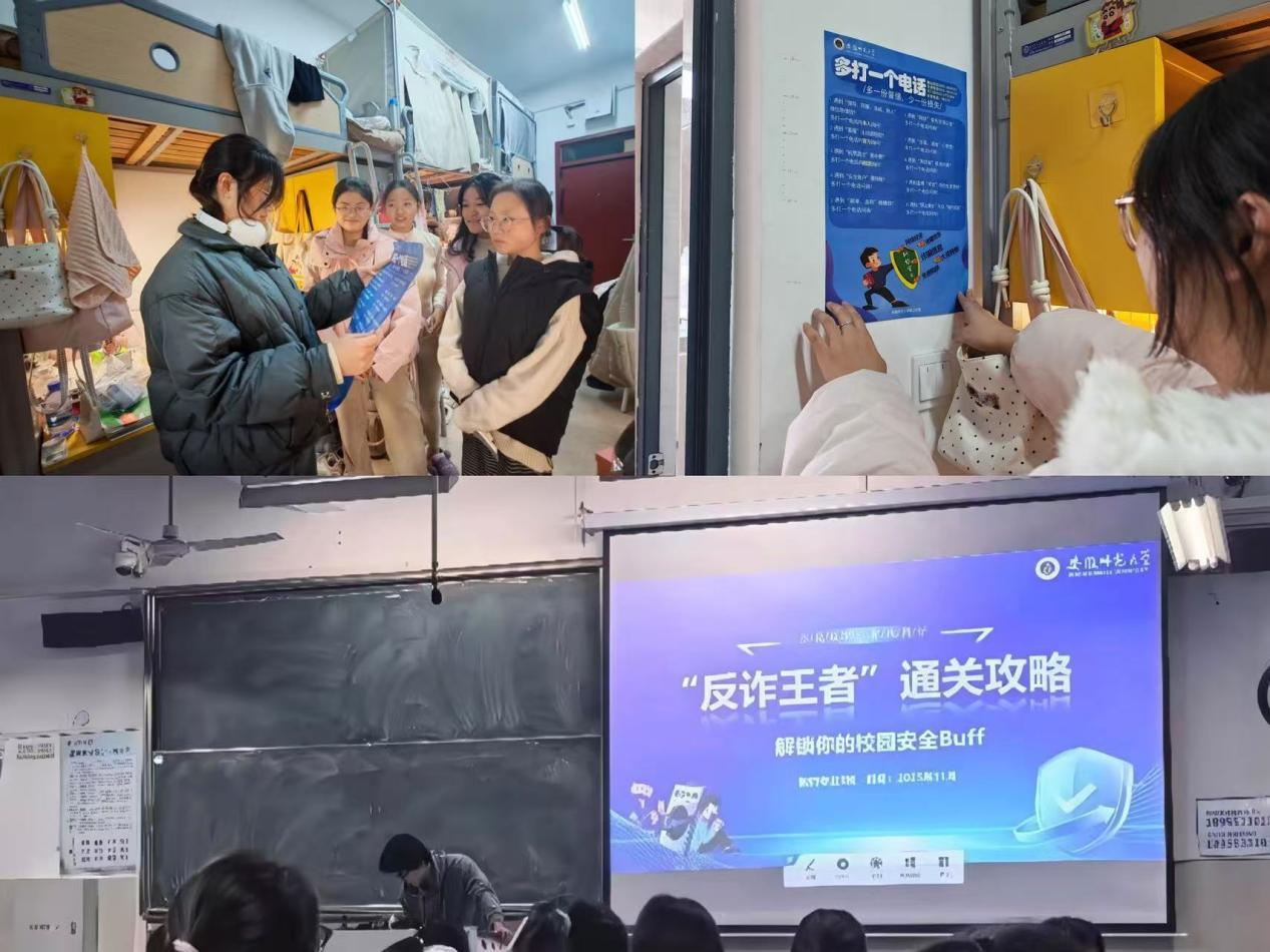 12月10日晚,班级深入开展“反诈护航,青春同行”安全教育系列活动。通过主题班会剖析典型案例、普及防诈知识,并在宿舍区张贴宣传提示,将反诈意识延伸到生活角落,切实增强学生防范能力。