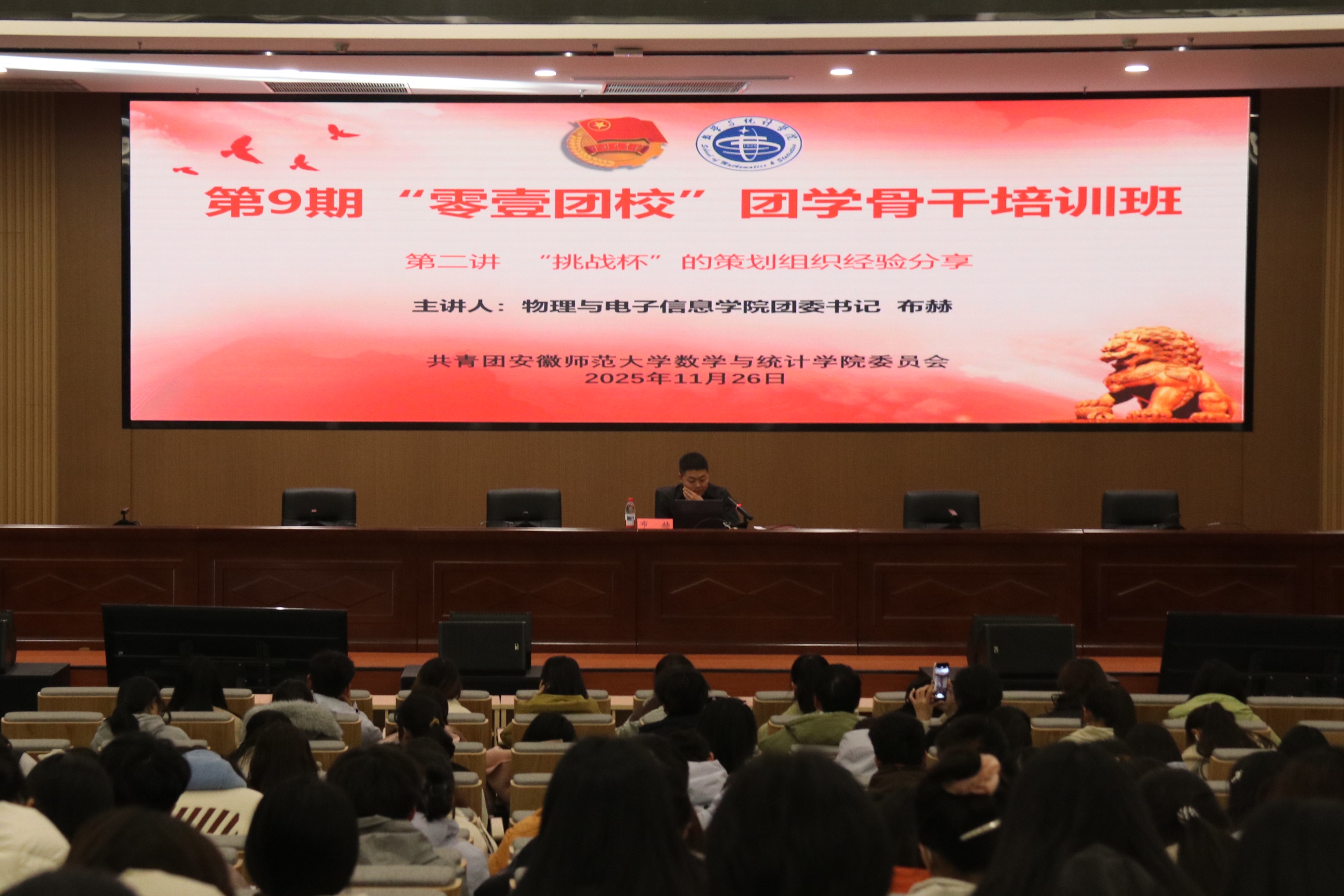 近日,数学与统计学院团委举办了第九期青马工程“零壹团校”团学骨干培训班,本次培训旨在筑牢团学骨干思想根基,提升组织协调能力与服务奉献精神,凝聚青春力量助力学院发展。