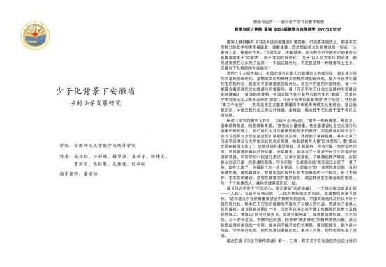 在“青春共读课”环节,陈博文等同学聚焦少子化背景下安徽省乡村小学的发展现状,走访多所乡村小学,通过问卷调查、师生访谈、数据比对等方式,深入剖析乡村小学在师资配置、生源结构、教育资源供给等方面的现实困境,形成翔实的研究报告,为乡村教育优质均衡发展提供了青年视角的解决思路;董瑞以《根脉与远方》为题,深入研读习近平总书记著作,结合返乡实践经历,畅谈理论学习对个人成长与家乡发展的引领作用;周若娴以《炬照未来》为主题,分享读书感悟与实践心得,在文字与行动的交融中传递青年理想;周宇轩则通过实地走访、深度访谈,完成《习近平七年知青岁月采访实录》的整理工作,从知青岁月中汲取初心力量,让红色精神在新时代青年心中生根发芽。