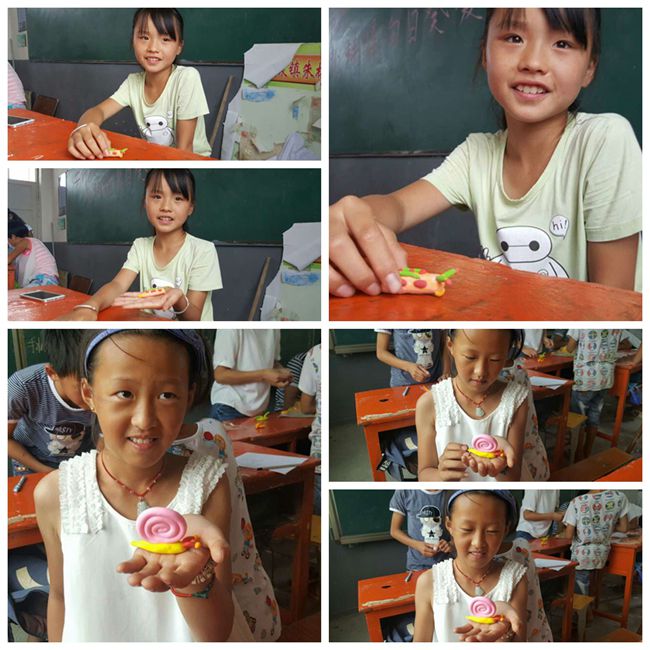 下午的手工课程是对粘土的进阶学习,看着孩子们将自己的想象的动物通过动手变得活灵活现,看着孩子们在纸上认真地写下自己的梦想,队员们经历到一场童年的梦想季,嗅到一朵朵花开的芬芳。