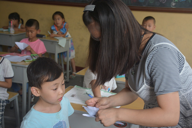 “老师老师!这个是这样折吗?”“老师老师!你看我叠的好不好!”手工课上,一年级的小朋友们高高地举着小手,围在支教队员曹园园的身边,争着给老师看他们制作的“皮卡丘”;三年级的教室里,《疯狂动物城》正在放映,十几个学生和老师一起围坐在桌边,眼神紧紧追随着剧情,不时爆发出一阵大笑;操场,永远是热爱运动的孩子们的乐园,跳远、爬杆、引体向上……五年级的班主任贾成浩抱着篮球站在场边,充当教练发号施令,帮孩子们记录着各自的成绩。