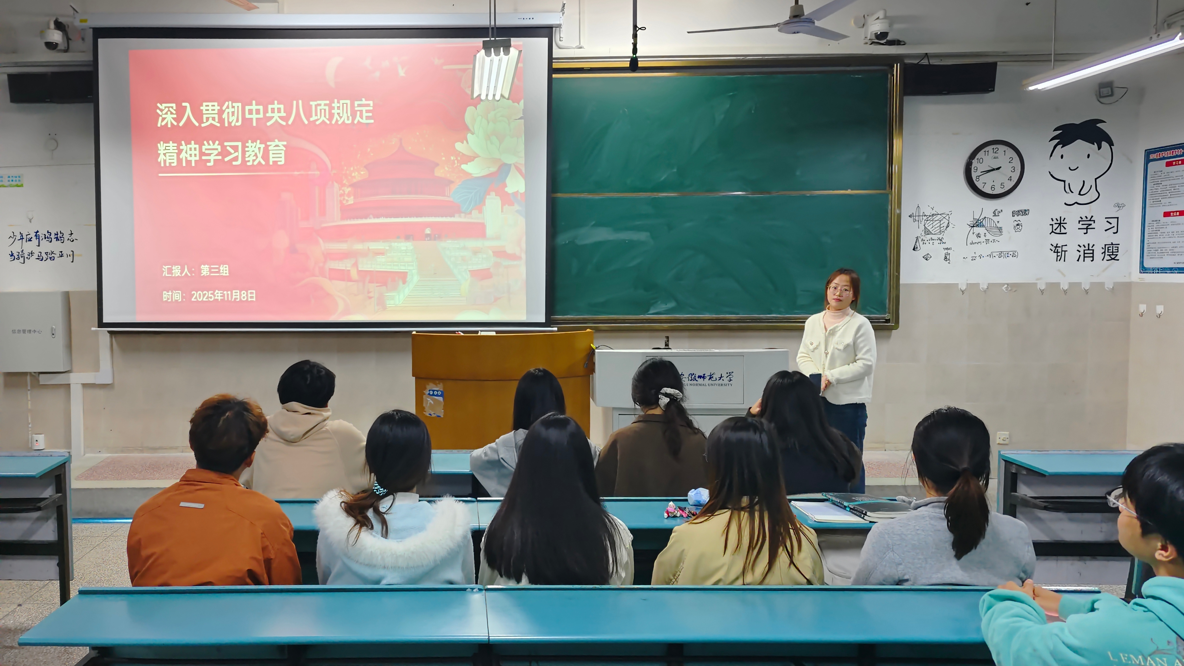 为加强青年党员思想政治建设,筑牢廉洁自律意识。11月9日,数学与统计学院分党校第十四期党员培训班第三组全体学员在行知楼2030301教室组织开展“深入贯彻中央八项规定精神学习教育”主题活动,本次活动由组长赵纳主持。